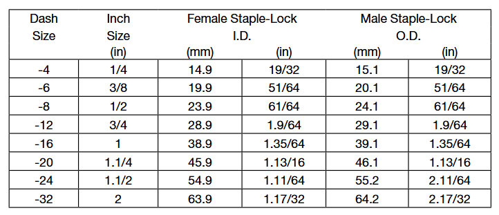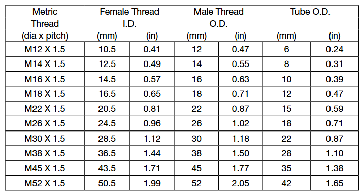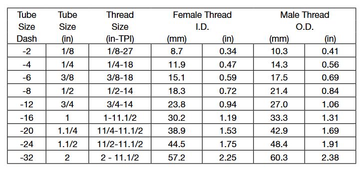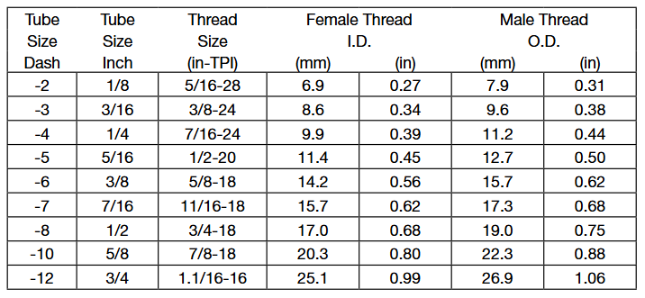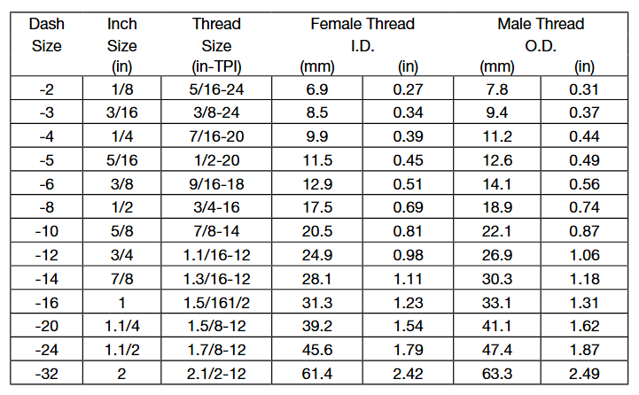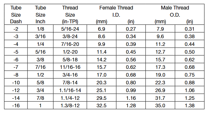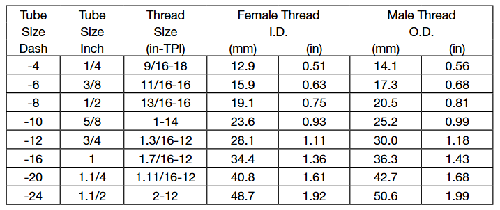 通常會把尺寸簡寫為以16為分母的分子數,如-04表示4/16或1 /4” 英寸。