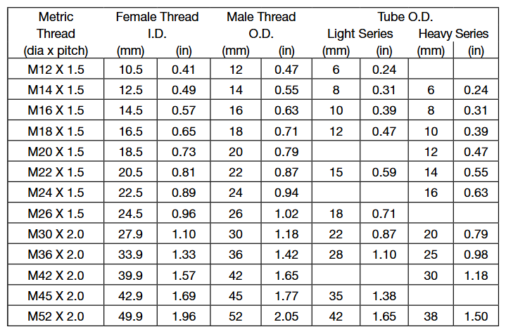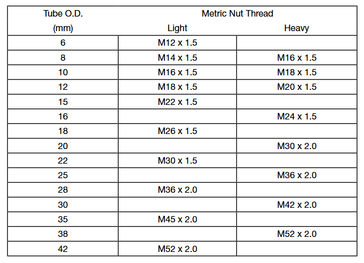 DIN接頭有輕重系列之分。通過測量螺紋尺寸和鋼管外徑可以分辨輕重系列。(重系列相比輕系列,鋼管外徑較小,但是壁較厚)。