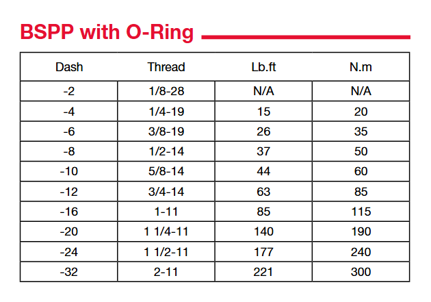 軟管接頭和過渡接頭安裝扭矩推薦表