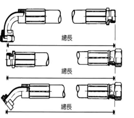 軟管總成長度:軟管總成長度是從一個軟管接頭端面到另一個軟管接頭端面的水平距離。這個長度允許±1%的制造誤差。如果長度過長,會影響外觀并增加成本;如果長度過短,軟管在受壓伸展或壓縮時沒有足夠的伸縮余地,可能會導致軟管被破壞。