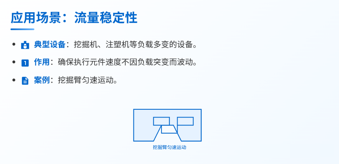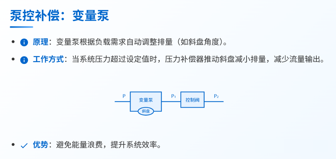 定義: 液壓系統(tǒng)中,通過(guò)自動(dòng)調(diào)節(jié)系統(tǒng)參數(shù)(如閥口開(kāi)度或泵排量),維持節(jié)流閥前后壓差(△P)的恒定,從而確保通過(guò)閥口的流量穩(wěn)定,不受負(fù)載壓力波動(dòng)的影響。