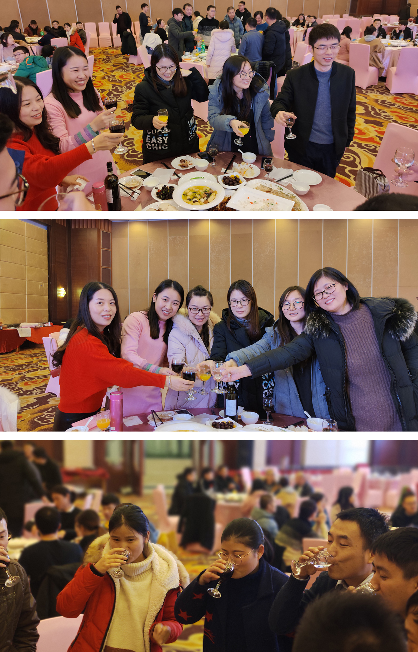 舉起酒杯,相互感謝身邊的家人們,這一年你們辛苦了,讓我們共同舉杯,迎接更加輝煌的2020,共同帶著對2020年的新期待,干了這杯酒!