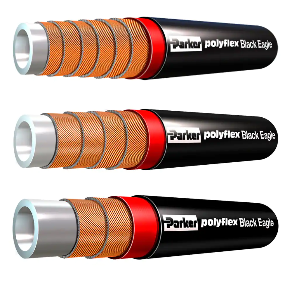 派克黑雕軟管是柔韌的、大口徑、鋼絲增強的高壓熱塑軟管,設計用于上游石油和天然氣應用,包括但不限于油井灌注、油井增產和替代水力壓裂應用的活動彎頭。黑雕產品系列由尼龍芯管,高強度的鋼絲增強層,以及采用ColorGard技術的雙層聚氨酯外層組成。派克是一家采用ColorGard?技術的油氣軟管制造商。ColorGard?作為一種“早期預警”指示,是在外層與鋼絲增強層之間額外擠出成型的彩色防護層,可作為視覺指標,提醒最終用戶注意可能會損害軟管總成操作完整性的過度外部磨損。通過視覺識別軟管外層磨損的情況,提醒操作員更換軟管組件,或在某些情況下修復外層,從而為最終用戶打造更安全的操作環境。市場:? 上游石油和天然氣 ? 陸基和近海 特點/優勢:? 輕質的柔性壓裂軟管(比R13橡膠管輕至30%) ? 可替代鐵管的輕質壓裂軟管(輕達70%) ? 彎曲半徑比復合軟管更小 ? 泄漏點更少、易于對準、連接更快、系留更少 ? 更快速、更安全地從泵連接到噴射器 ? 連續長度長,無需拼接(可達1000米;具體視內徑/壓力而定) ? 采用ColorGard?技術,使得操作更為穩定和安全 應用:? 油井灌注/增產 ? 水力壓裂 ? 泥漿泵送 ? 酸化 ? 固井 技術規格:? 工作壓力高達15,000 psi ? 內徑大至3英寸 ? 聚氨酯外層 ? 尼龍芯管 ? 高強度鋼絲纏繞增強層 ? 抗外壓/抗坍塌 ? 采用ColorGard?技術