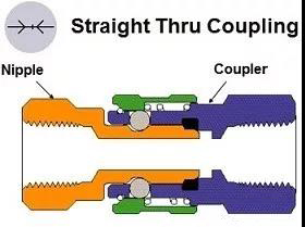 直通快換接頭內部無閥,主要用于水路或要求全速流動的場合,如壓力沖洗設備、蒸汽清洗設備、流體輸送管路、制冷系統等。